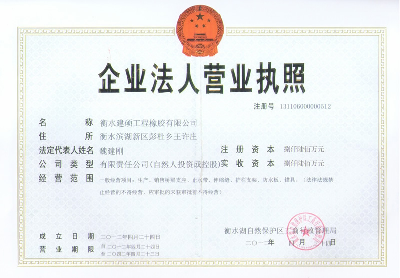 衡水建碩工程橡膠有限公司座落于衡水市濱湖新區(qū),占地面積50000平方米,注冊(cè)資金壹億零捌拾萬(wàn)元整,是生產(chǎn)橡膠支座、盆式支座、充氣芯模、伸縮裝置、止水帶的專(zhuān)業(yè)廠(chǎng)家。公司始建于九十年代,經(jīng)過(guò)近二十年的發(fā)展壯大,現(xiàn)有員工300多人,其中高級(jí)技術(shù)人員45人,高級(jí)技工103人。